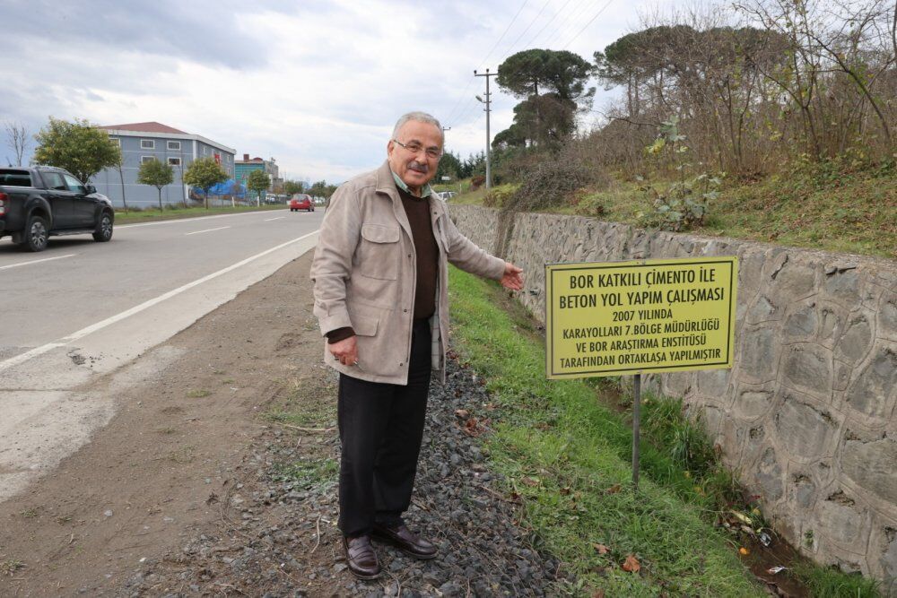 Ordu Büyükşehir Belediye Başkanı Dr. Mehmet Hilmi Güler’in Enerji ve Tabii Kaynaklar Bakanı olduğu dönemde 15 yıl önce test amaçlı döşenen milli ürün ’bor’lu beton yol, aradan geçen yıllara rağmen en küçük bir aşınma göstermedi. 15 yılda üç kez asfalt çalışması yapılan yolda, 'bor'lu betonun bulunduğu bölüm, bütün doğa şartlarına rağmen ilk gün gibi özelliğini koruyor.