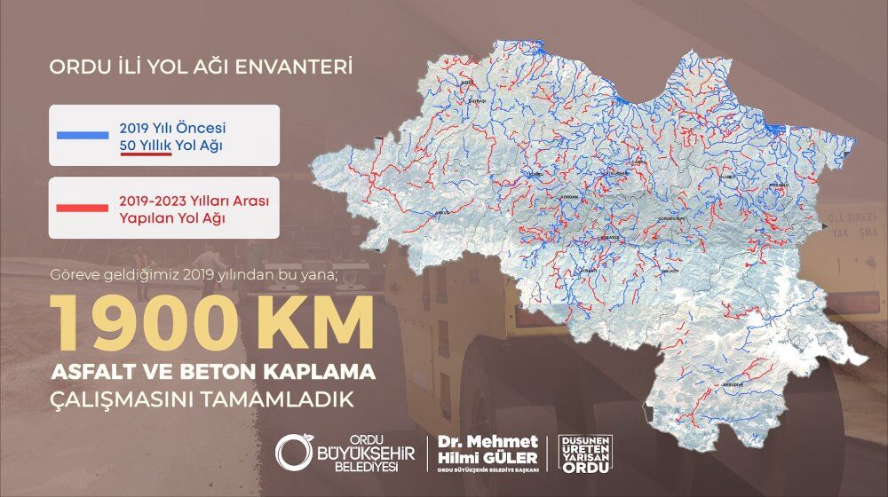 Göreve başladıkları günden bu yana Ordu’da yol ve su alanında tarihi yatırımlara imza attıklarının altını çizen Başkan Güler, 1900 km yolu asfalt ve beton ile buluşturduklarını söyledi.