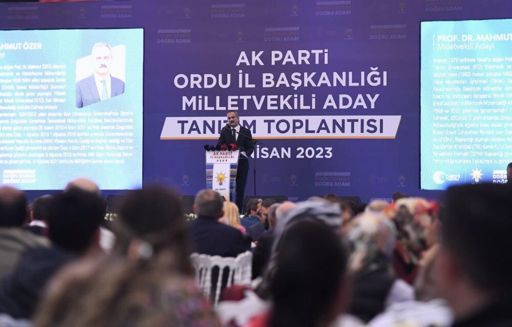 "Milli Eğitim Bakanım Mahmut bey inşallah Ordu ile beraber orada özellikle eğitimde atılacak adımlarda Ordu'ya çok farklı bir şekilde çıta yükseltilmesine fırsat verecektir, vesile olacaktır. Bunun yanında ikinci sıradaki arkadaşımız olsun öyle, üçüncü sıradaki Mustafa beyi zaten tanıyorsunuz biliyorsunuz. Dört, beş, hakeza öyle. Bunların hepsini komisyonlarımızda ciddi manada inceleyerek adımları attık. Şimdi diyorum ki durmak yok, yola devam. Bazılarının da hesaplarını da sizler Ordulular olarak bugüne kadar nasıl bozduysanız bundan sonrada bozacağınıza inanıyorum."